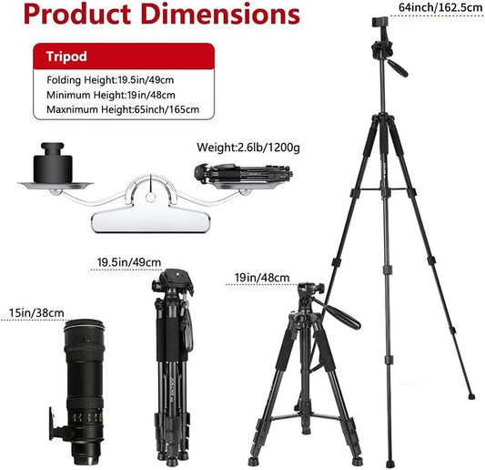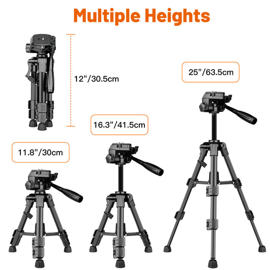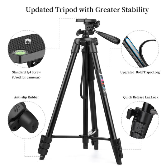 JOILCAN Mini Tripod for Camera, Aluminium 25inch Portable Tripod Stand for iPhone, Lightweight Travel Tripod with Phone Holder & Remote Shutter for Smartphone/DSLR Cameras/Projectors/Video Camcorder(EU)