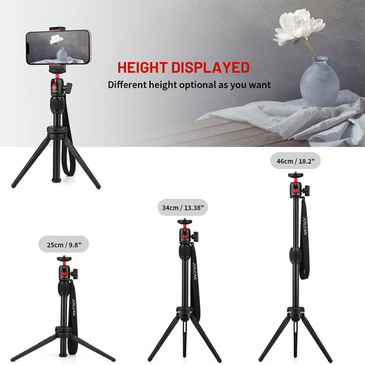 JOILCAN Mini Tripod, Aluminium Portable Desktop Tripod Stand with 360 Degree Ball Head, 1/4 Screw Tabletop Tripod with Selfie Stick for Webcam, Projectors, Compact Camera, Load up to 3 kilograms(EU)