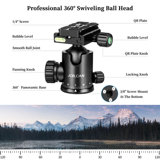 JOILCAN Camera Tripod, 80" Compact Aluminum Tripod Monopod with 360°Panorama Ball Head, Lightweight Travel Tripod with Phone Holder and carrying bag, Max Load 22lbs(EU)