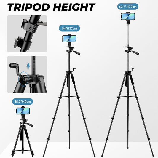 JOILCAN Phone Tripod for iPhone 67.7", Extendable Mobile Phone Tripod Stand with Remote, Phone Holder with Cold Shoe Mount, Lightweight Camera Tripod, Extendable Tripod for iPhone/Android Smartphones(EU)
