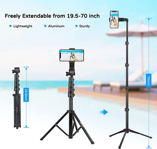 JOILCAN Phone Tripod, 70" Extendable Selfie Stick Tripod for iPhone with Wireless Remote Shutter, Lightweight Portable Camera Tripod with Phone Holder, Compatible with iOS/ Android/ Small Camera(EU)