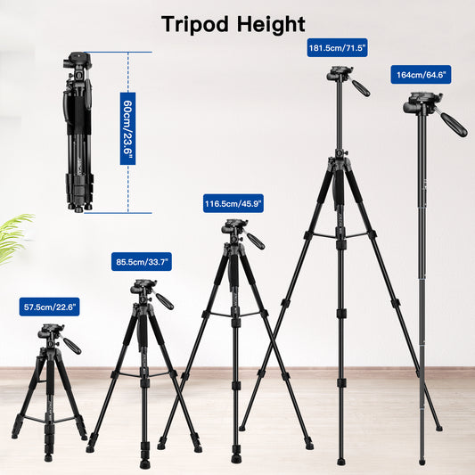 Camera Tripod, 72” Tripod for Camera Stand, Aluminum Heavy Duty Tripod for Video Photo, 5 in 1 Travel Camera Tripod & Monopod Compatible with Canon Nikon Cameras DSLR Camcorder Projector Phone(USA)