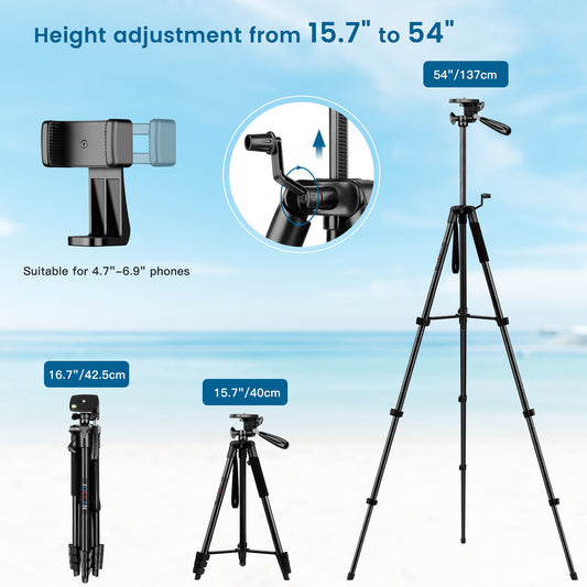 JOILCAN Phone Tripod Stand, 54" Aluminum Extendable Camera Tripod with Phone Holder & Control Remote Shutter for Android/iOS, Lightweight Portable Tripod for iPhone/Smartphone/Action Camera(EU)