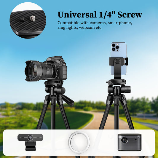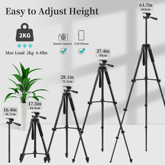 JOILCAN Camera Tripod for Canon Nikon Sony, 65" Aluminum Alloy Tripod Stand with Detachable Head & Phone Holder & Carry Bag, Lightweight DSLR Tripod for Smartphone/Vlog/Streaming, Max Load 5.5kg(EU)
