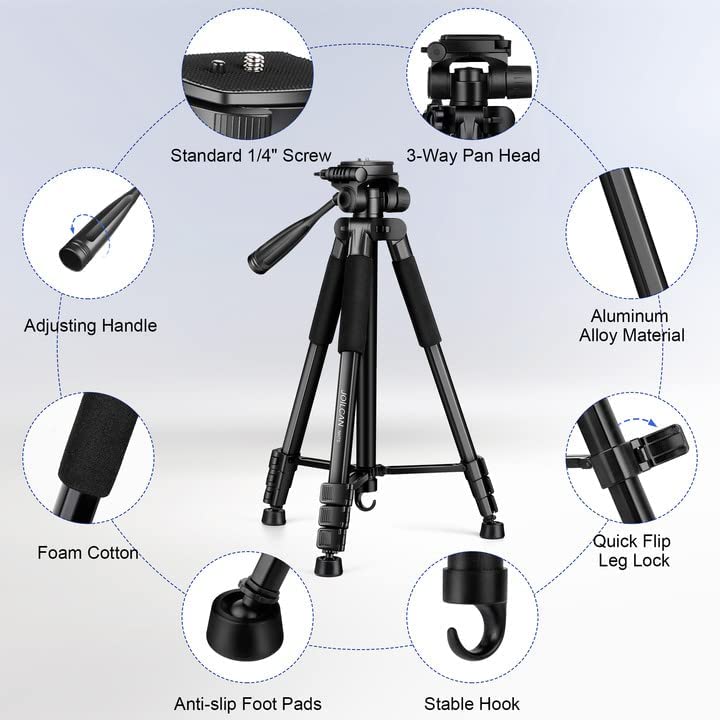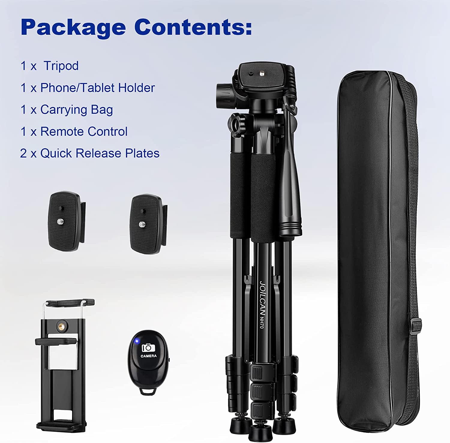 【Tripod for Camera Phone Tablet】Professional camera tripod has a standard 1/4" screw mount, compatible with Nikon, Canon, DSLR, SLR, action cameras, other digital cameras, projectors, spotting scopes, ring light, and camcorders. Universal phone holder compatible with iPhone 14 13 12 11 Pro/XS/XR/MAX/8/8 Plus/X/7 Plus/7/6s Plus/6s/6 Plus/6, Samsung Galaxy S10 Plus /S10/S8 Plus /S8 /S9 Plus /S9 /Note 8, IPad Pro 9.7"/10.5"/ 11", iPad Mini 1/2/3/4/5/6.